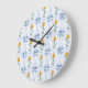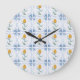 A decorative wall clock with no numbers and a background pattern of tulips on blue and white faux tile art retouched and reproduced from an actual antique tiles. Click Customise It to add your name or message, even save your design for later.