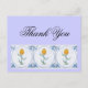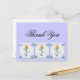 Art of vintage blue and white delft art tiles with a yellow tulip line the bottom of this customisable Thank You post card. On a blue background, by AngelCityArt