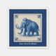 A humourous, monotone, blue woolly mammoth (mammathus primigenius) in the style of a Delft tile. Customise by adding your own text.