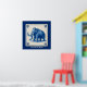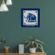 A humourous, monotone, blue woolly mammoth (mammathus primigenius) in the style of a Delft tile. Customise by adding your own text.