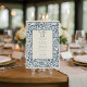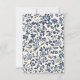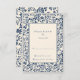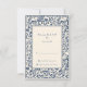 This beautiful RSVP response card features a classic Delftware-inspired blue floral design, with intricate blooms elegantly framing centerpiece. The charming blue and white colour palette exudes a timeless, vintage feel, perfect for complementing a traditional or formal wedding theme. The options for “joyfully accepts” and “regretfully declines” offer a touch of refinement and personality, making this card a lovely way for guests to RSVP. Its sophisticated floral border ensures your wedding suite will feel elegant and cohesive.
