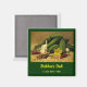 This magnet can be used as a promotional handout to advertise a delicatessen. Displayed are cucumbers, pickling spices, hot pepper, dill and garlic: all the ingredients for a fine dill pickle! The text reads: Bubba's Deli and the phone number, but can be customised to fit your own business, or just removed.