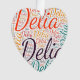 Delia. Show and wear this popular beautiful female first name designed as colourful wordcloud made of horizontal and vertical cursive hand lettering typography in different sizes and adorable fresh colours. Wear your positive british name or show the world whom you love or adore. Merch with this soft text artwork is a great present, not only in womens history month, or birthday gift.