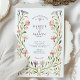 Announce your special day with this exquisitely delicate Art Nouveau-inspired wedding invitation. A graceful, hand-painted watercolor border of climbing vines creates a natural oval frame for your details. The design features stylised flowers in a romantic palette of soft pink, peach, and creamy white, with lovely lilac and jewel-toned blue accents. Each petal and leaf is elegantly defined by a fine, faux gold outline, lending a touch of sophisticated shimmer. Perfect for a spring, garden, or artistic wedding, this invitation exudes romance and whimsical charm.