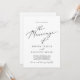 This delicate black calligraphy all in one marriage invitation is perfect for a modern wedding. The romantic minimalist design features lovely and elegant black typography on a white background with a clean and simple look. Save paper by including the details on the back of the wedding invitation instead of on a separate enclosure card. Include the RSVP info as well if your guest will be replying electronically (optional).