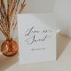 This delicate black calligraphy love is sweet wedding pedestal sign is perfect for a modern wedding. The romantic minimalist design features lovely and elegant black typography on a white background with a clean and simple look.