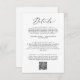 This delicate black calligraphy qr code details enclosure card is perfect for a modern wedding. The romantic minimalist design features lovely and elegant black typography on a white background with a clean and simple look. Use the QR code to link to your wedding website for additional details, to RSVP, or to share their favourite photo memories for use at your reception.