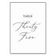 This delicate black calligraphy table thirty five table number is perfect for a modern wedding. The romantic minimalist design features lovely and elegant black typography on a white background with a clean and simple look. The card prints on the front and back (double-sided). Other table numbers in the collection are sold separately.