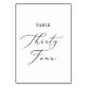 This delicate black calligraphy table thirty four table number is perfect for a modern wedding. The romantic minimalist design features lovely and elegant black typography on a white background with a clean and simple look. The card prints on the front and back (double-sided). Other table numbers in the collection are sold separately.
