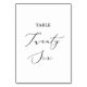 This delicate black calligraphy table twenty six table number is perfect for a modern wedding. The romantic minimalist design features lovely and elegant black typography on a white background with a clean and simple look. The card prints on the front and back (double-sided). Other table numbers in the collection are sold separately.