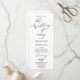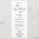 This delicate black calligraphy the wedding of program is perfect for a modern wedding. The romantic minimalist design features lovely and elegant black typography on a white background with a clean and simple look. Include the name of the bride and groom, the wedding date and location, thank you message, order of service, bridal party and an optional "in loving memory" memorial.