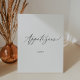 This delicate black calligraphy wedding appetizers pedestal sign is perfect for a modern wedding. The romantic minimalist design features lovely and elegant black typography on a white background with a clean and simple look.