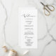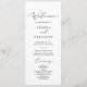 This delicate black calligraphy wedding program is perfect for a modern wedding. The romantic minimalist design features lovely and elegant black typography on a white background with a clean and simple look. Include the name of the bride and groom, the wedding date and location, thank you message, order of service, bridal party and an optional "in loving memory" memorial.