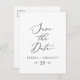 This delicate black save the date announcement postcard is perfect for a modern wedding. The romantic minimalist design features lovely and elegant black typography on a white background with a clean and simple look.