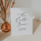 This delicate black this candle burns wedding memorial pedestal sign is perfect for a modern wedding. The romantic minimalist design features lovely and elegant black typography on a white background with a clean and simple look.