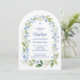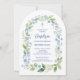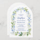 Delicate Digital Watercolor Blue Shades Floral Frame Arch Shape Baptism Invitation Cards.