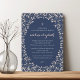 Invite friends and family to celebrate your daughter's christening, baptism or dedication with our sweetly chic invitations, featuring a rich navy blue background and your christening details framed by a delicate wreath of baby's breath in pale blush pink and cream. Elegant calligraphy script and classic block lettering lends this invitation a feminine and elegant look. Includes space for the church ceremony and party or reception.