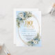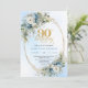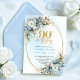 Delicate Boho Dusty Blue Floral Gold 90th Birthday Invitation