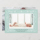 An intricate botanical border in soft pastel mint green and white frames your favourite horizontal newborn photo in this beautiful birth announcement for brand new baby girls. Personalise with your new arrival's name, birth stats and your names beneath the photo. Add a second photo to the back if desired, or remove the sample photo to reveal a pattern of mint green and white stripes.