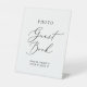 This delicate calligraphy wedding photo guest book pedestal sign is perfect for a modern wedding. The romantic minimalist design features lovely and elegant black typography on a white background with a clean and simple look.