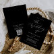 This delicate dark black QR code back wedding invitation is perfect for a modern wedding. The moody design features lovely and elegant white typography on a black background with a sophisticated look. Save paper by including a QR code for your guest to view details, RSVP, or both.