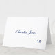 This wedding place card features a pre-printed guest name and a pre-printed table number, both in dark blue text, with the text appearing on both sides of the place card once the card is folded in half. (The printed place card will arrive flat and so will need folding in half before use. The size before folding is approximately 5" height by 3.5" width, intended to be folded so approximately 2.5" by 3.5" after folding). Please use the online personalisation template to personalise the place card before adding to the cart. (Please repeat the personalisation process for each card you wish to purchase, adding the card to the cart individually each time). A neatly-personalised place card for a stylish wedding or other special occasion.
