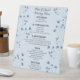 Immerse yourself in elegance and celebrate in style with our exquisite wedding tabletop menu sign. This stunning sign features delicate dark blue flowers on a light blue background, exuding an air of sophistication and charm. Inform your guests of the tantalising array of delectable delights that await them with this beautiful sign, setting the stage for a memorable and delicious event. Elevate your wedding day gathering with this stunning signage, serving as the perfect introduction to your special day's culinary delights.