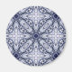 A beautifully detailed kaleidoscope mandala in blue and white that resembles fine china or damask. This elegant design is printed on a magnet.