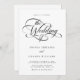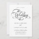 Elegant black and white wedding invitation featuring romantic swirly calligraphy lettering with details on the back. Perfect for any season. For more advanced