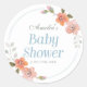 This lovely Baby Shower round stickers feature delicate watercolor floral. They're perfect for a boy baby shower. Use it to seal your envelopes, favour bags or for decoration. Check out matching Baby Shower invitation and other matching items here http://www.zazzle.com/collections/delicate_floral_baby_shower_collection-119280472918500268?rf=238364477188679314