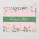 Stylish and elegant save the date postcard with a floral design with a deep a soft pink background..