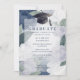 Delicate Floral Green and Blue Graduation Party Invitation
