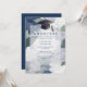 This invitation celebrates graduation with a delicate floral touch in green and blue tones, conveying freshness, joy, and elegance. The graduation cap on the front adds an academic nod that highlights the significance of the achievement, while the soft floral details bring a refined charm, creating a harmonious and memorable composition that captures the essence of the celebration.