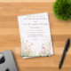This design features a delicate watercolor illustration of wildflowers in shades of green and pink.