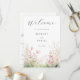 This design features a delicate watercolor illustration of wildflowers in shades of green and pink.