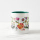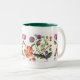 pencil drawing of flowers that looks very delicate on the mug. Both modern and old fashioned looking at the same time. I own 4 of these mugs and I enjoy using them.