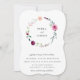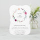 Beautiful watercolor green garden foliage and delicate blush pink, fuchsia and magenta jewel tone flowers, wedding invitation. Back of card features solid pesto green colour.