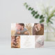 This delicate gold 4 photo template save the date postcard is perfect for a modern wedding. The romantic minimalist design features lovely and elegant champagne golden yellow typography on a white background with a clean and simple look.