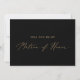 This delicate gold and black matron of honour proposal card is perfect for a modern wedding. The romantic minimalist design features lovely and elegant champagne golden yellow typography on a black background with a clean and simple look. Customise the card with the name of the bride and the matron of honour. Personalise the back of the card with a personalised message.