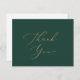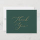 This delicate gold calligraphy green thank you card is perfect for a modern wedding. The romantic minimalist design features lovely and elegant champagne golden yellow typography on an emerald green background with a clean and simple look. Personalise the back of the card with your names, and a thank you message. Alternatively, leave the thank you message template section blank to hand write a personalised note on each card after they arrive. These cards can be used for a wedding, bridal shower, or any special event.