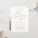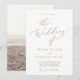 This delicate gold calligraphy photo back wedding invitation is perfect for a modern wedding. The romantic minimalist design features lovely and elegant champagne golden yellow typography on a white background with a clean and simple look.