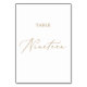 This delicate gold calligraphy table nineteen table number is perfect for a modern wedding. The romantic minimalist design features lovely and elegant champagne golden yellow typography on a white background with a clean and simple look. The card prints on the front and back (double-sided). Other table numbers in the collection are sold separately.