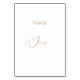 This delicate gold calligraphy table six table number is perfect for a modern wedding. The romantic minimalist design features lovely and elegant champagne golden yellow typography on a white background with a clean and simple look. The card prints on the front and back (double-sided). Other table numbers in the collection are sold separately.