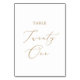 This delicate gold calligraphy table twenty one table number is perfect for a modern wedding. The romantic minimalist design features lovely and elegant champagne golden yellow typography on a white background with a clean and simple look. The card prints on the front and back (double-sided). Other table numbers in the collection are sold separately.