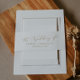 This delicate gold calligraphy wedding invitation belly band is perfect for a modern wedding. The romantic minimalist design features lovely and elegant champagne golden yellow typography on a white background with a clean and simple look. Personalize these paper belly bands with the names of the bride and groom, and the wedding date.