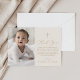 Delicate Gold Cream Photo Simple Cross Baptism Thank You Card