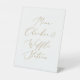 This delicate gold mini chicken and waffle station pedestal sign is perfect for a modern wedding.