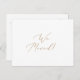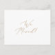 This delicate gold new home We've Moved moving announcement postcard is the perfect modern change of address card. The romantic minimalist design features lovely and elegant champagne golden yellow typography on a white background with a clean and simple look.