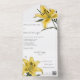 Step into elegance with our All-in-One wedding invitation featuring delicate golden yellow lilies, a symbol of purity and beauty. The simple yet striking design exudes timeless beauty, perfect for couples seeking a touch of sophistication for their wedding invitations. The All-in-One wedding invitations are both beautiful and practical by combining the wedding invitation with an easy to remove perforated RSVP postcard. They are also quick and easy to prepare for mailing. Simply address the invitation, fold the back flap and seal with the included clear stickers. Once your guests receive the pre-addressed invitation they simply tear off the perforated RSVP card and drop it in the mail. The addition of the QR code allows your guests to easily access your wedding website for information including reception details and dinner choices!