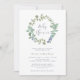This lovely, gender neutral baby shower invitation features a soft, dusty coloured watercolor wreath with trendy green leaves and soft blue berries. Calligraphy style script typography is also featured for an elegant look.